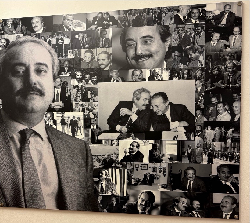 Così, dopo aver attraversato il vibrante mercato di Ballarò e del Capo, immersi nei suoi colori, nei profumi e nelle voci coinvolgenti, arriviamo davanti al Palazzo di Giustizia. Superati i controlli di sicurezza, ci raduniamo nell’atrio del palazzo, dove al centro è installata una scultura bronzea dedicata a tutti i caduti della giustizia.